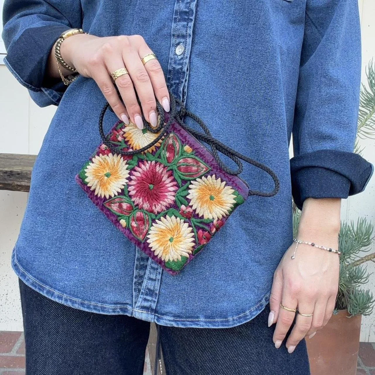 Image 1 of 5 Image 2 of 5 Image 3 of 5 Image 4 of 5 Image 5 of 5 Multicolor Handmade embroidered flower mini purse $15.00 Multicolor Handmade embroidered flower mini purse Add To Cart Added! Multicolor Handmade embroidered flower mini purse